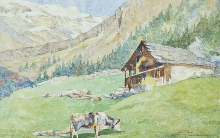 Ulderico Marotto San Michele (VR) 1890 - 1985 Paesaggio della Lessinia Acquerello su carta, cm. 18x28 Firmato in basso a destra. Sul verso: etichetta con descrizione.