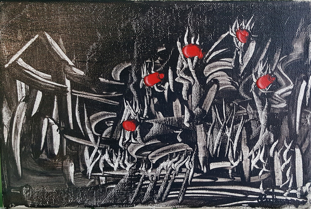 Bruno Antonazzo, "Paesaggio", olio su tela cm 20x40, Autentica dell'Artista su foto