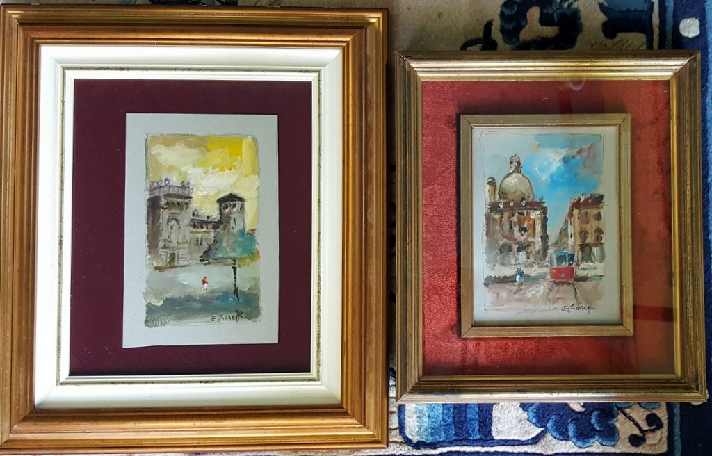 Edmondo Maneglia, Due scorci di Torino, Olii su cartoncino cm 20x15 ca, Autentica e Archivio dell'Artista su foto, opere con decorosa cornice