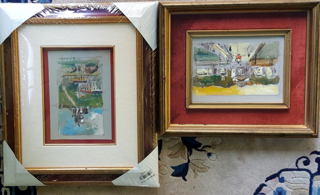 Edmondo Maneglia, Due scorci di Torino, Olii su cartoncino cm 20x15 ca, Autentica e Archivio dell'Artista su foto, opere con decorosa cornice