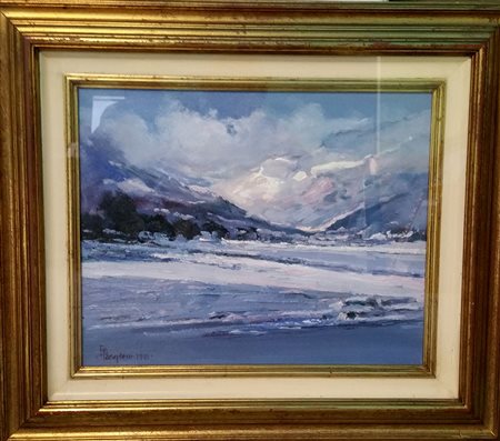 Dino Pasquero "la mia neve", 1981, olio su tavola cm 40x50 Firma e anno in...