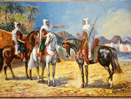 Giovan Francesco Gonzaga,"incontro a Tangeri" Serigrafia polmaterica a più passaggi di colore, Firma in basso a dx nr p.a