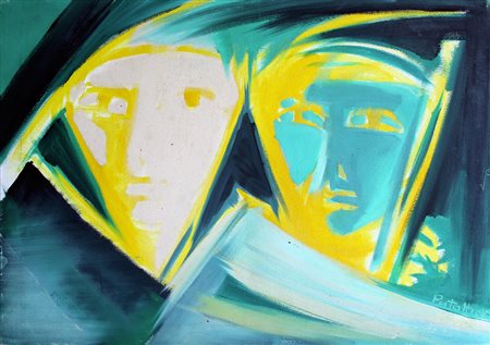 Sergio Putatti "volti" 1969 olio su tela cm 50x70.Firma e anno in basso a dx