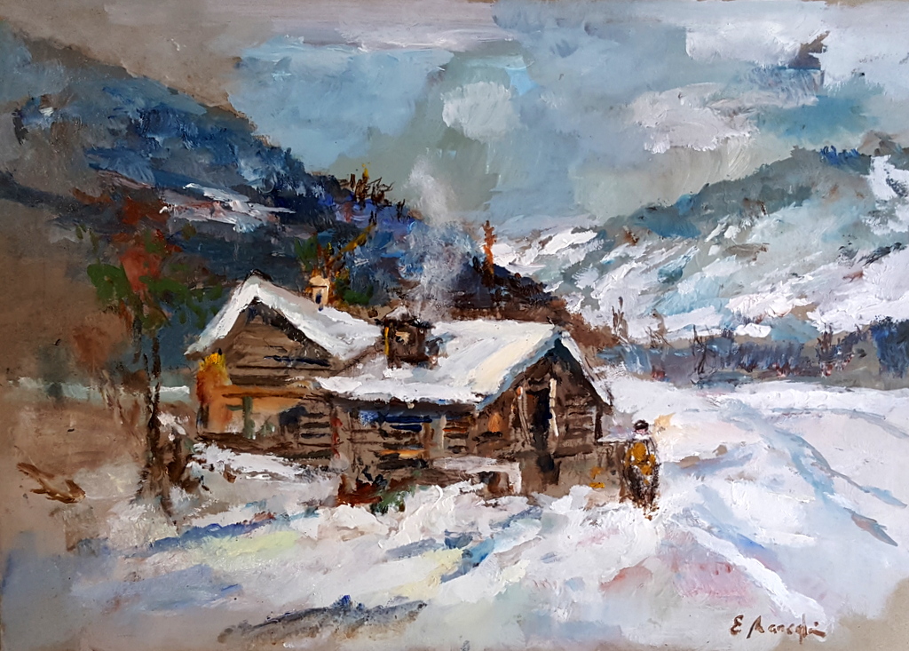 Edmondo Maneglia," neve in val di Susa" 2002 olio su tela cm 40x50 Autentica e Archivio dell'Artista su foto