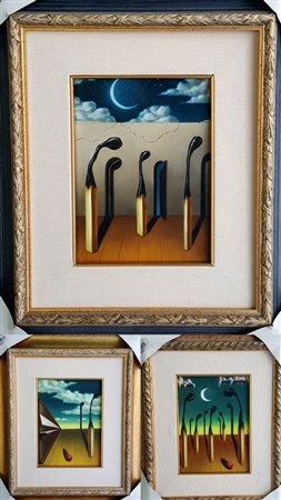 Davide Nunziante, "Trittico metafisico" olio su tela cm 18x24 ciascuna Autentica dell'artista su foto opere corredate di belle cornici nuove