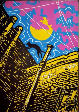 Massimo Costantini, "Gatto sui tetti", acrilico su tela cm 70x50 autentica dell'artista su foto