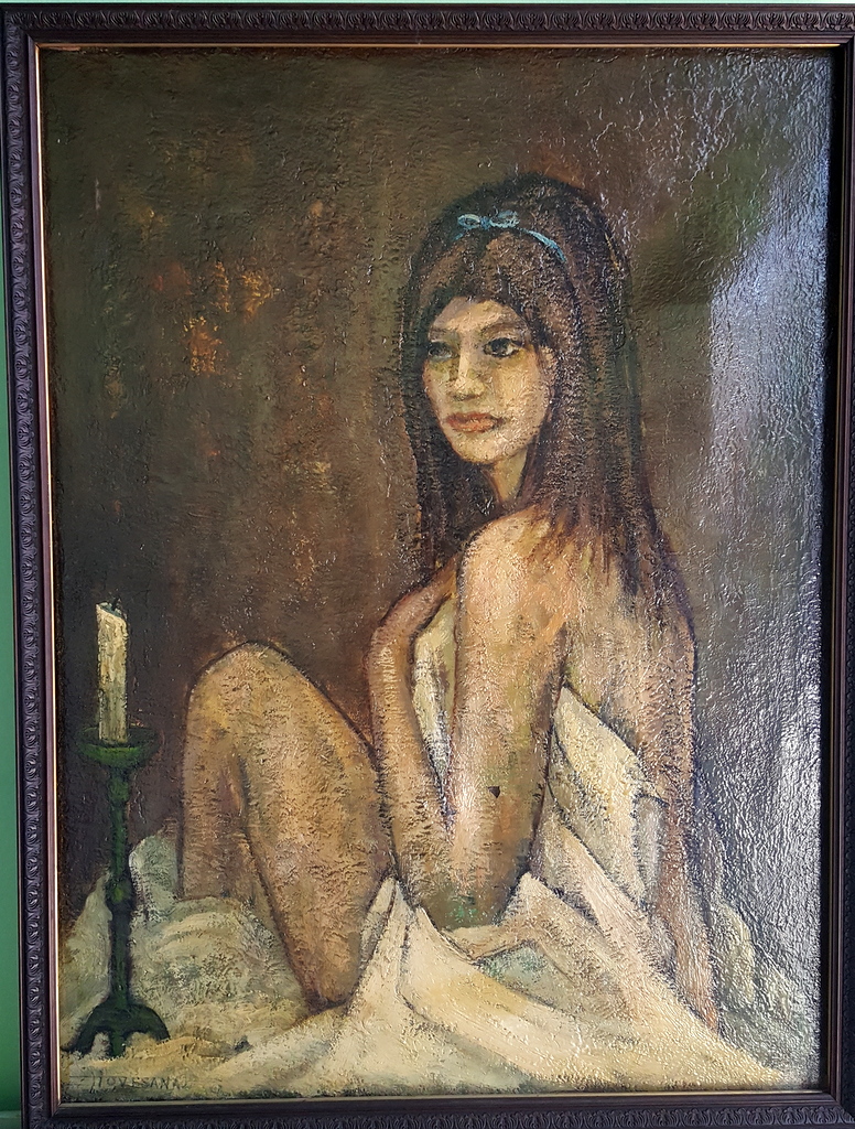 Piovesana, "Modella", olio su tela materico cm 80x60, firma in basso a sinistra