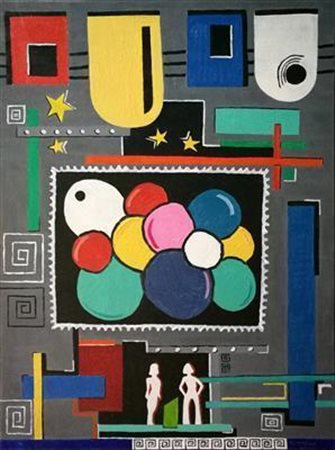 Michele Cimò, "Festa", olio su tela cm 80x60, firma dell'artista in basso a...