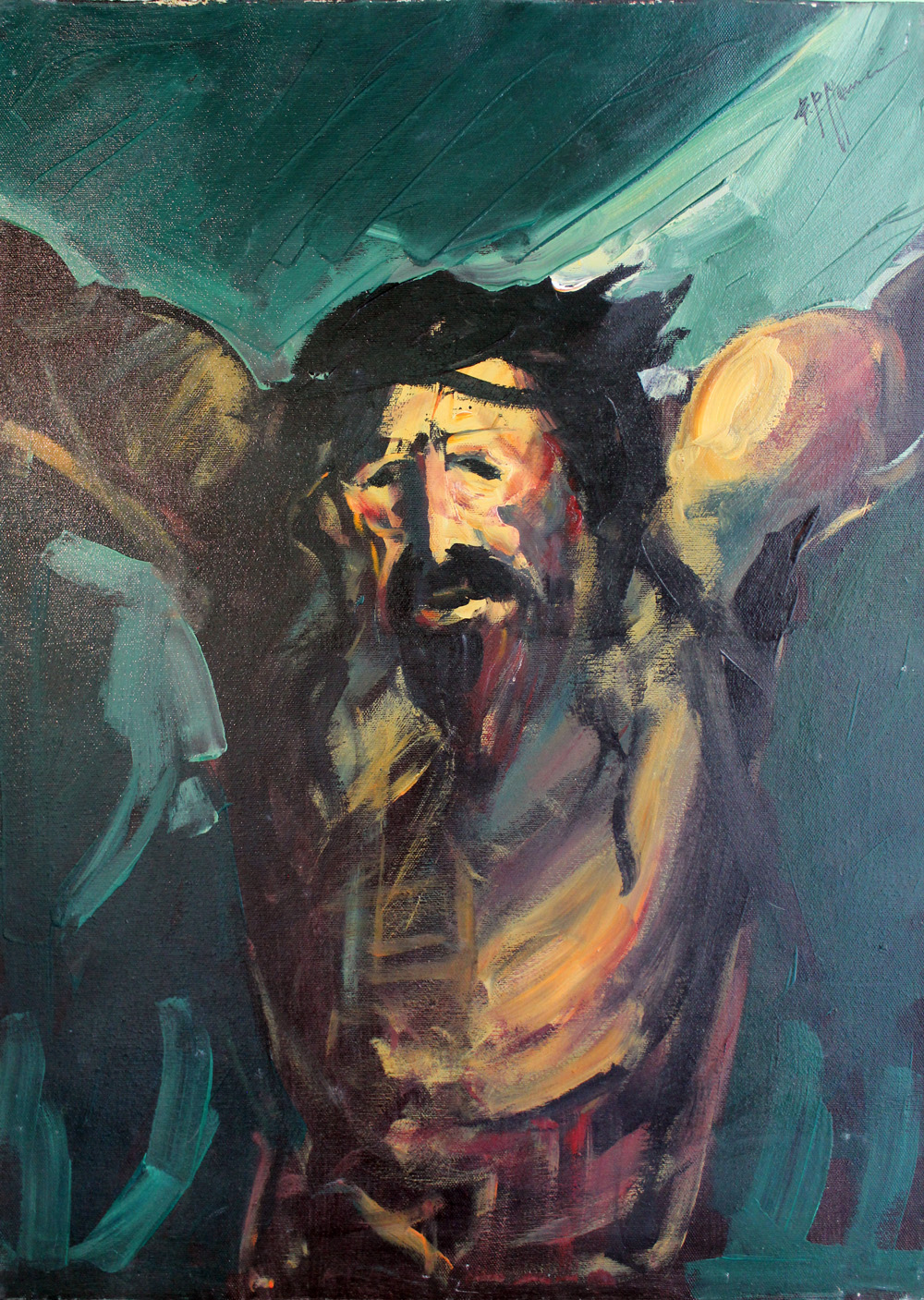 Francesco Mancini, "Crocifissione", olio su tela cm 70x50, firma in alto a destra