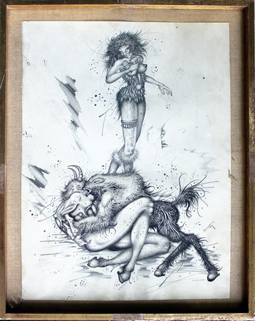 Antonio Cannata, "La sfida", tecnica mista, china e matita su carta, cm...