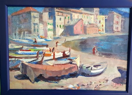C. Goria, "Marina", 1973, olio su tavola cm 35x50, firma in basso a destra
