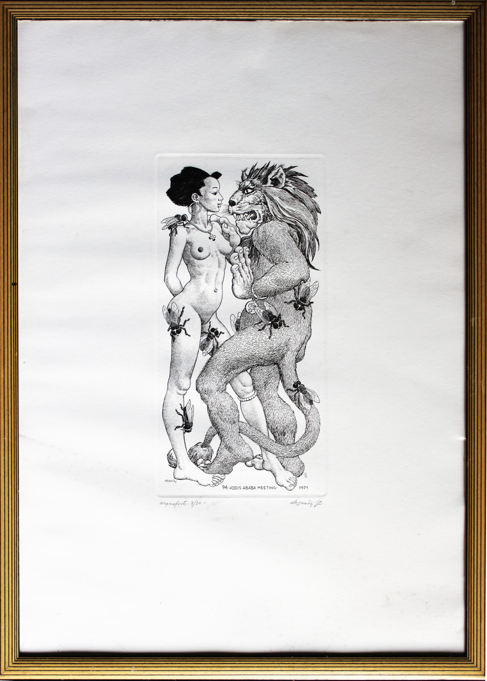 Lorenzo Alessandri, "Adis Abeba Meeting", 1971, acquaforte su carta cm 50x70, n. 3/30, firma in basso a destra