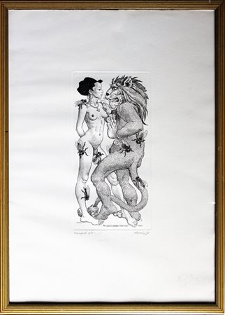 Lorenzo Alessandri, "Adis Abeba Meeting", 1971, acquaforte su carta cm 50x70,...