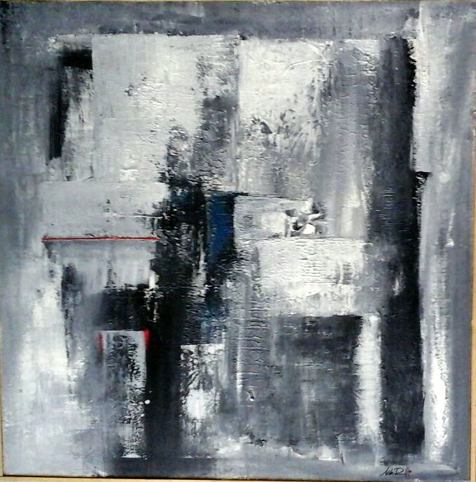 Mirko Roncelli, "Paesaggio urbano", olio su tela cm 90x90, firma in basso a destra