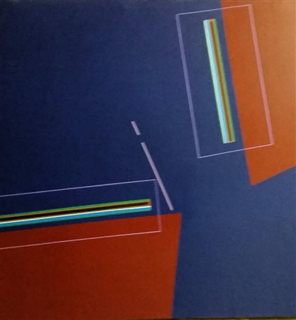 Martino Mazzoleni, "Composizione astratta", olio su tela cm 70x70, firma, titolo e anno al retro