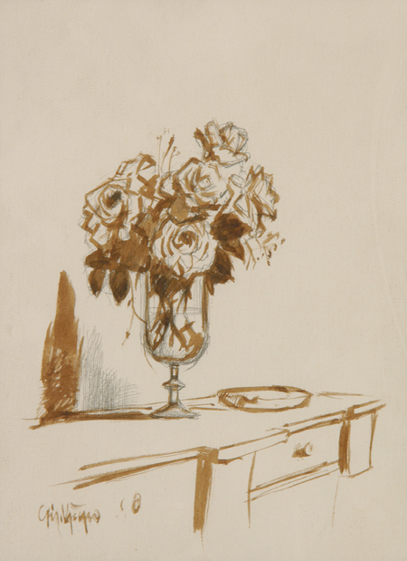 Giacomo Vaccaro Sassetta 1935 Lotto unico di due Opere - "Figura", acquerello su carta, cm. 19x15, firmato in basso a destra; - "Vaso di rose", tecnica mista su carta, cm. 23x17, firmato in basso a sinistra.