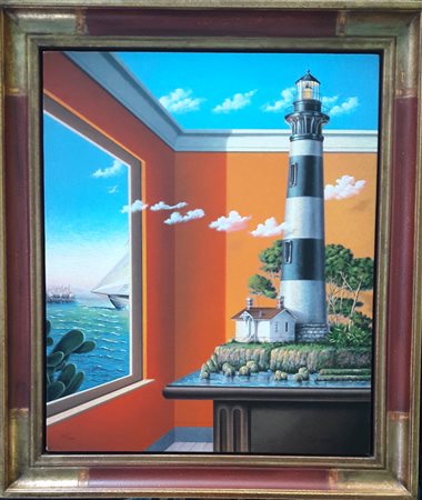 Antonio Nunziante, "Interno metafisico", serigrafia polimaterica su tela cm 60x50, autentica e archivio dell'Artista su foto