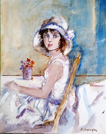 Edmondo Maneglia, "Damina", olio su tela cm 50x40 autentica e archivio dell'artista su foto