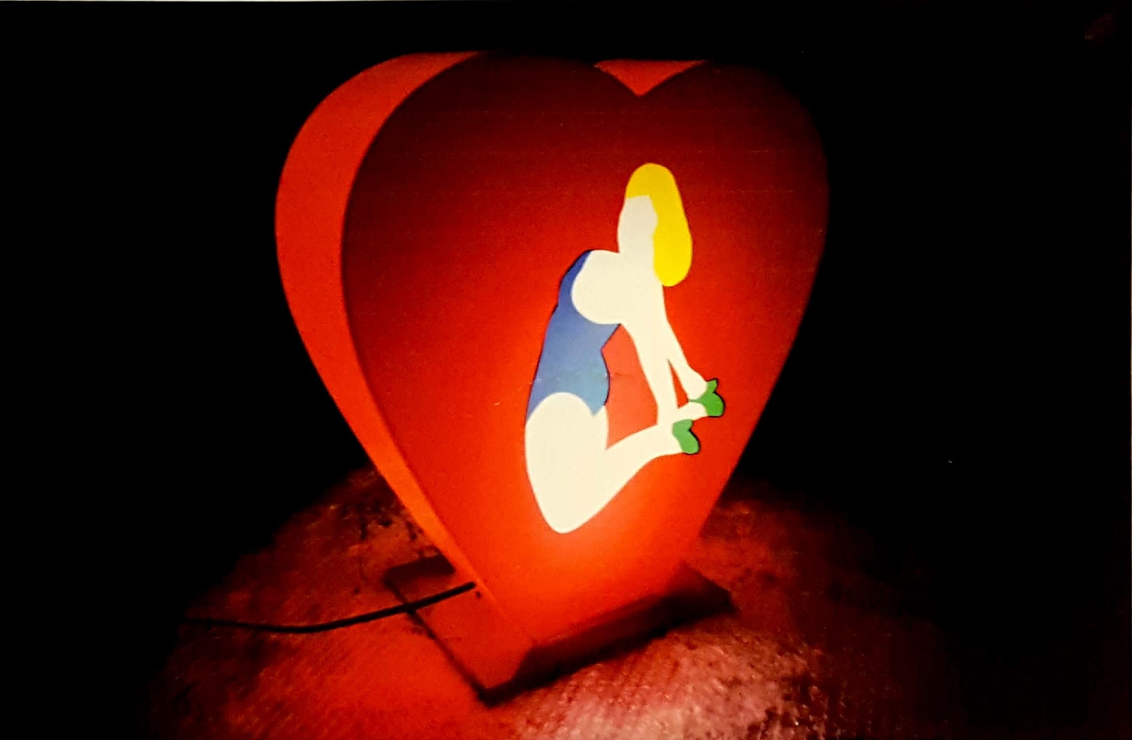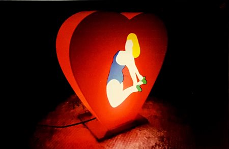 Marco Lodola, "Cuore di pin-up", Scatola luminosa cm 42x39,5 firma e autentica dell'Artista su foto
