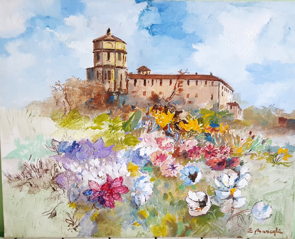 Edmondo Maneglia, "Primavera al Monte dei Cappuccini - Torino", olio su tela cm 40x50, firma in basso a destra, autentica e archivio dell'artista su foto