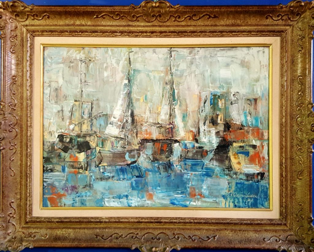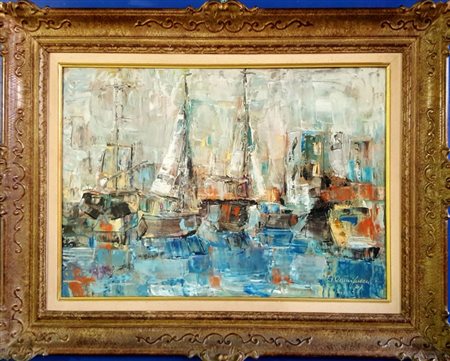 Camignani Augusto "Barche ", 1971, olio su tela cm 50x70, firma in basso a destra