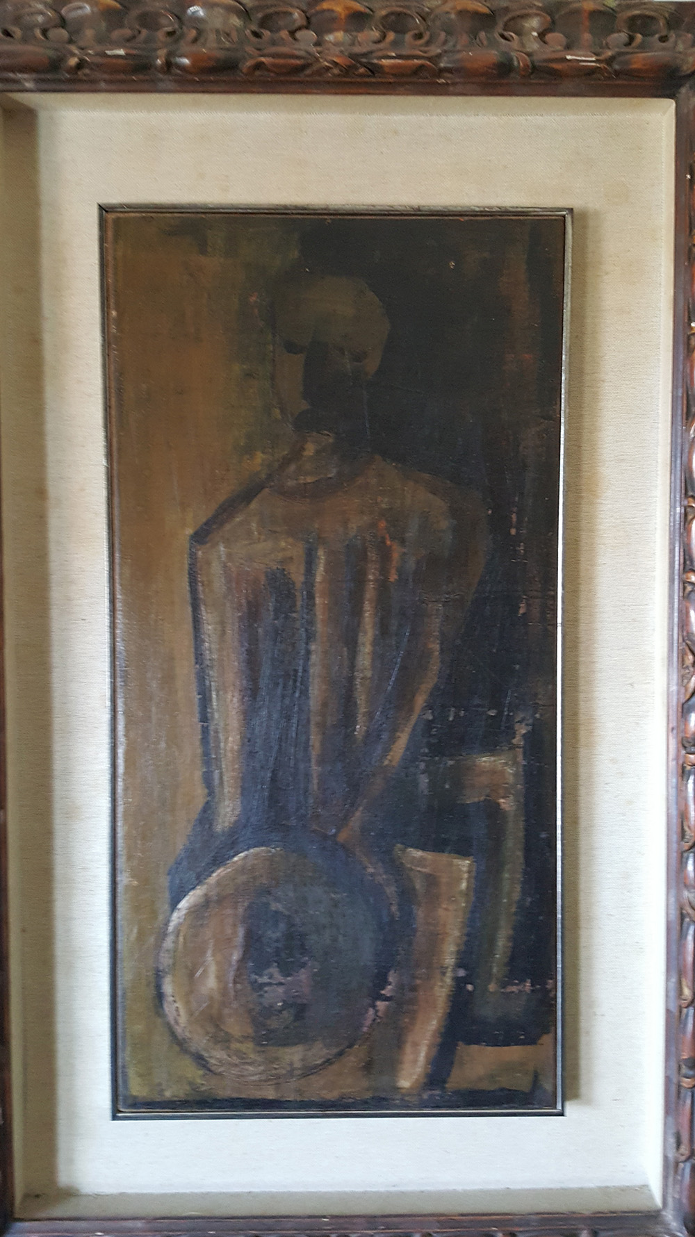 Mario Sironi, "Lavoratore", olio e tecnica mista su carta intelata cm 59x27, autentica e archivio su foto dell'Associazione Nazionale Gallerie d'Arte Moderna - Milano (n. repertorio 1713/89/M)