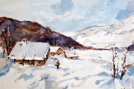 Edmondo Maneglia, "Paesaggio innevato", olio su tela cm 40x60, firma in basso a destra, autentica e archivio dell'artista su foto
