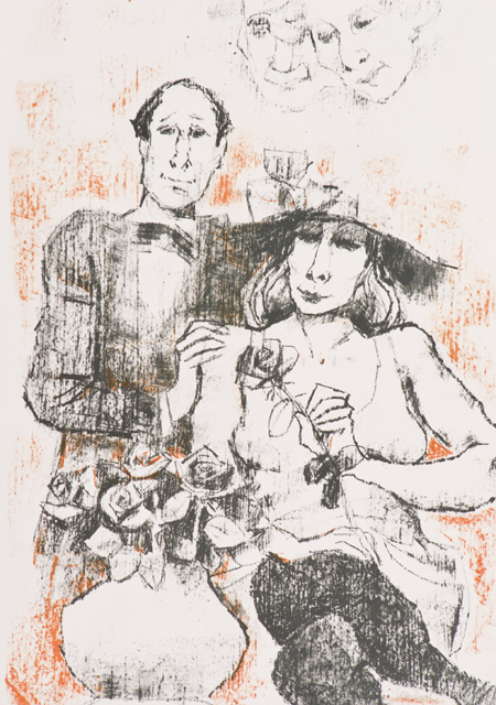 Remo Squillantini Stia 1920 - Stia 1996 Innamorati Litografia su carta, cm....
