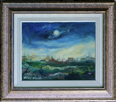 Nuzzo William, "Paesaggio urbano", olio su tela cm 24x30, firma in basso a sinistra