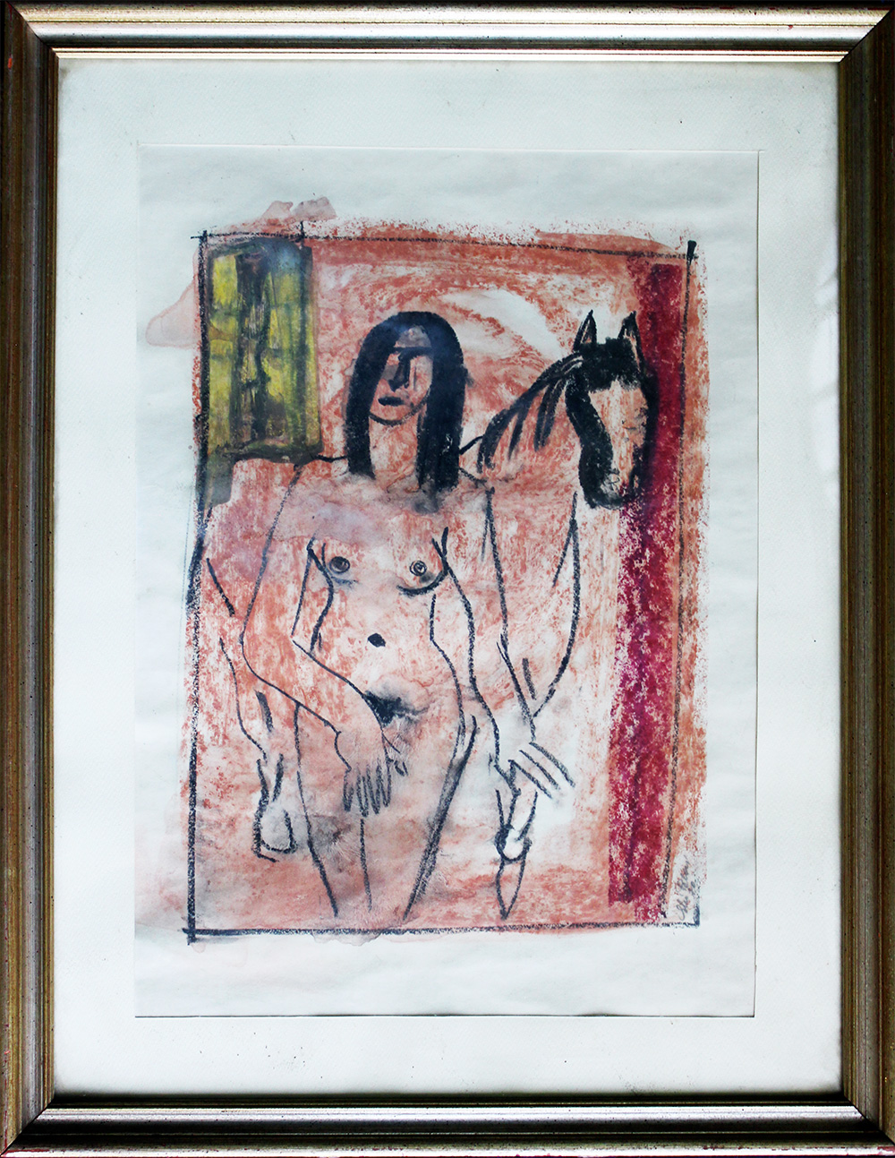 Elio Pelosi, "Amazzone", tecnica mista su carta cm 35x50, firma in basso a destra