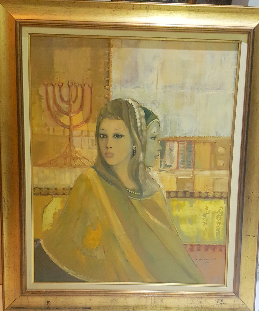 Sandro Lo Cascio, "Le vestali", 1981, olio su tavola cm 80x70, firma e anno in basso a sinistra