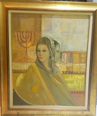 Sandro Lo Cascio, "Le vestali", 1981, olio su tavola cm 80x70, firma e anno...