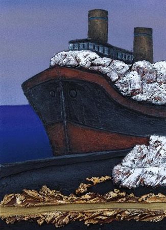 Mario Paschetta,"porto di marmi di Carrara"1999 tecnica mista su tela...