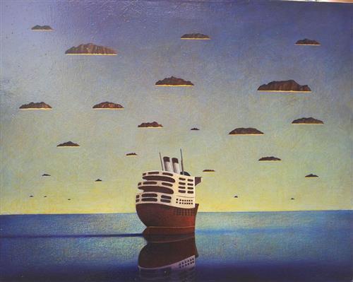 Franco Fortunato "la crociera" olio su tela cm 60x80,firma in basso a dx .Autentica e Archivio dell'Artista su foto
