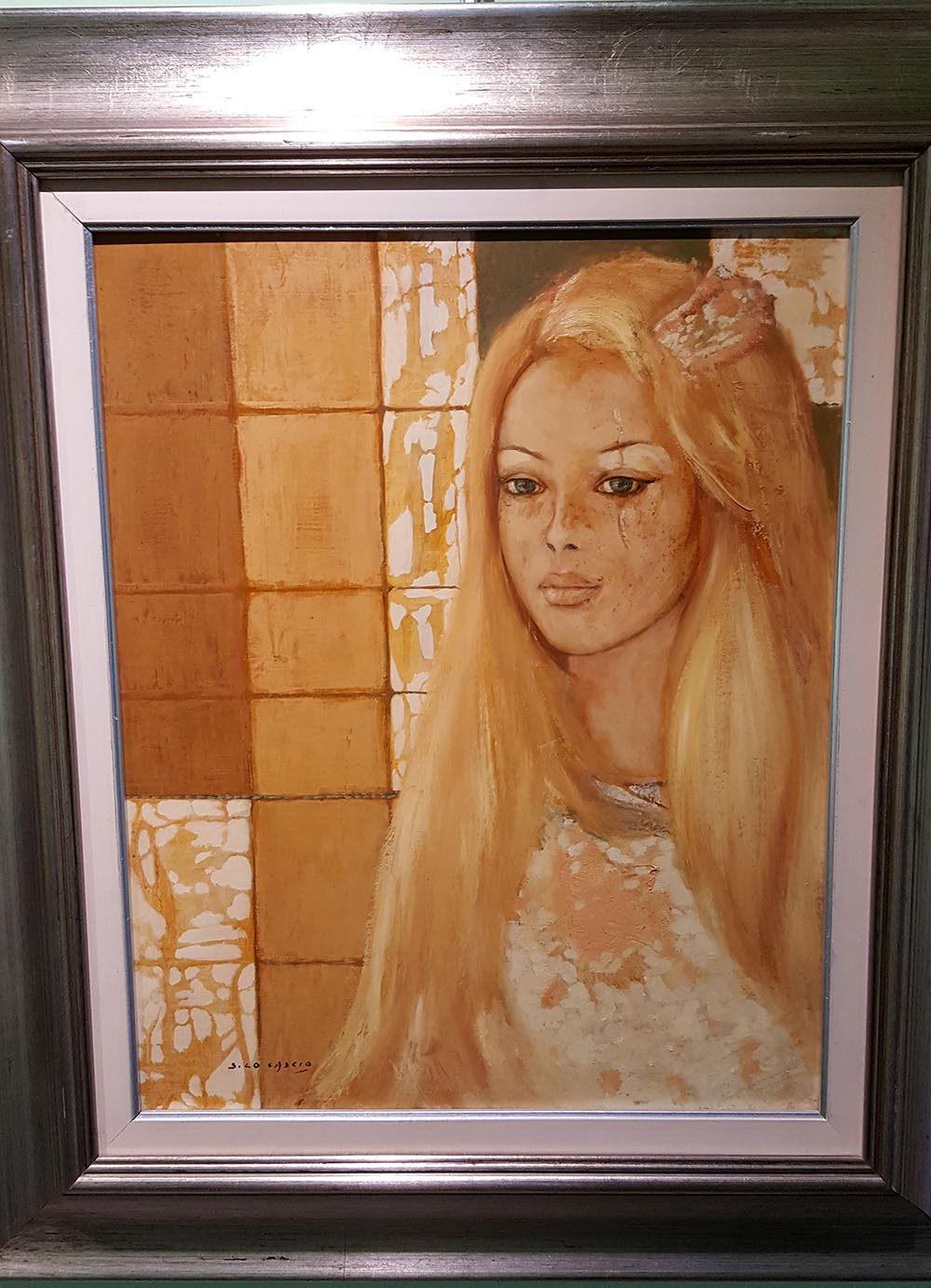 Sandro Lo Cascio "Figura femminile" 1980 Olio su tavola cm 50x40 firma in basso a dx e al retroautentica L'alfiere arte-To