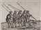 1) Cinque uomini con lance. 2) Gruppo di prigionieri incatenati. Xilografia. mm 265/325x360/375. Foglio: 400x540. Ristampe da Triumph Des Kaiser Maximilian I, serie ideata nel 1512 in 139 tavole destinate ad un fregio che celebrava i successi dell'imperatore Massimiliano I, frutto della collaborazione tra lo stesso imperatore e Johannes Stabius, con un testo di Marx Treitz-Sauerwein. Le illustrazioni, databili tra il 1516 e il 1518, erano in gran parte opera di Hans Burgkmair, con contributi di Albrecht Altdorfer, Hans Springinklee, Albrecht Dürer, Leonhard Beck e Hans Schäufelen. Alla morte di Maximilian nel 1519 il lavoro non era ancora compiuto e la prima edizione non fu pubblicata fino al 1526. Questa edizione di ristampe è apparsa in due volumi supplementari ai primi due "Jahrbuch der Kunsthistorischen Sammlungen des Allerhöchsten Kaiserhauses" (1883 e 1884), con il testo ed il programma originale di Massimiliano come annotato da Treitz-Sauerwein. I volumi supplementari, pubblicati nel 1883-84 a Vienna da Adolf Holzhausen, comprendono 135 impressioni dai blocchi originali conservati all'Albertina. (2)