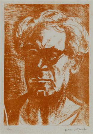 Giovanni March Tunisi 1894 - Livorno 1974 Volto Litografia su carta, cm. 70x50, es. 1/100 L'Opera presenta fioriture. Firma in basso a destra, tiratura in basso a sinistra.