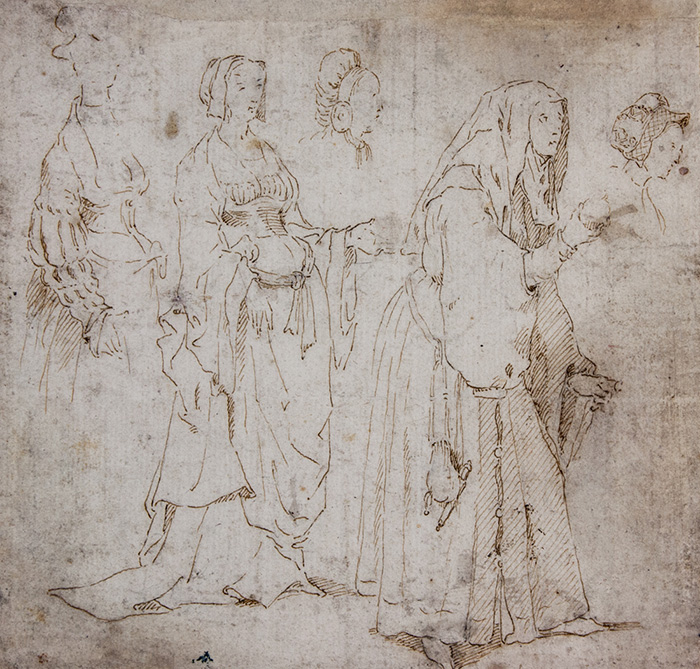 Anonimo del XVI secolo, Studi per figure femminili.Penna e inchiostro...