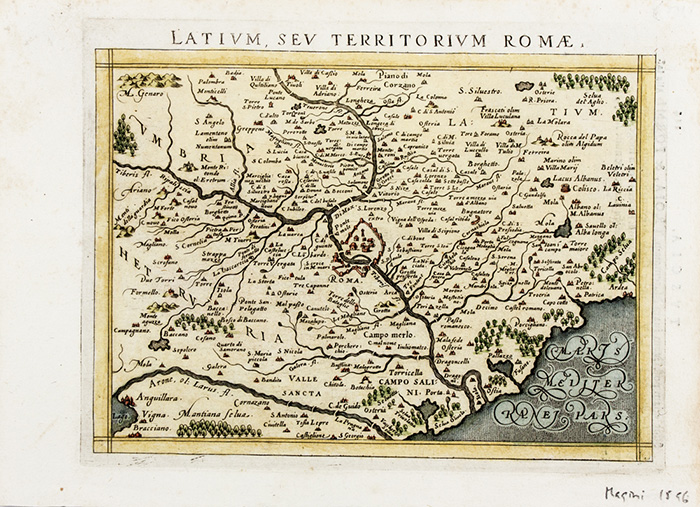 1) Latium, seu territorium Romae. Incisione in rame in coloritura. mm 136x180. Foglio: mm 158x220. Titolata in alto. Testo in latino al verso. 2) Tuscia. Incisione in rame in coloritura. mm 140x183. Foglio: mm 155x220. Titolata in alto. Testo in latino al verso. 3) Italia. Incisione in rame in coloritura. mm 138x180. Foglio: mm 155x215. Titolata in alto. Testo in latino al verso. Le tre carte provengono dall'opera Geographiae universae di Tolomeo realizzata da Giovanni Antonio Magini (ed. Venezia, 1596). (3)