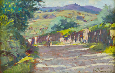 Giorgio Luxardo Livorno 1937 Castagneto Carducci Olio su tavola, cm. 20x30 Firmato in basso a destra. Sul verso: firma e titolo; Timbro "Galleria Chiellini", Livorno.