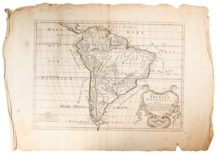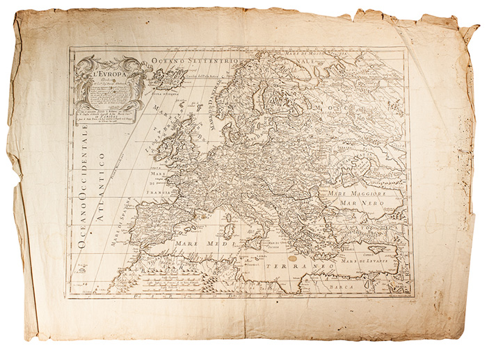 1) L'Europa. Incisione in rame. mm 410x560. Foglio: mm 535x760. Titolo in alto a sinistra entro cartiglio con dedica al principe di Avellino. In basso a destra: "Anton. Donzel Gallus sculp." 2) L'America Settentrionale. Incisione in rame. mm 400x550. Foglio: mm 535x770. Titolo in alto a sinistra entro cartiglio con dedica. In basso a destra: "Anton. Donzel Gallus sculp." 3) L'America Meridionale. Incisione in rame. mm 400x550. Foglio: mm 530x770. Titolo entro cartiglio decorato con dedica in basso a destra. In basso a destra: "Anton. Donzel Gallus sculp.". 4) L'Asia. Incisione in rame. mm 405x545. Foglio: mm 540x750. Titolo in alto a sinistra entro cartiglio decorato con dedica. In basso a destra: "Anton. Donzel Gallus sculp.". 5) L'Africa. Incisione in rame. mm 405x545. Foglio: mm 530x720. Titolo in alto a destra entro cartiglio con dedica. (5)