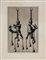 Incisione a pochoir in bianco e nero. mm 160x105. Foglio: mm 250x165. Firmata e data nella lastra in basso a destra. SI AGGIUNGONO: Sei incisioni erotiche di autori non identificati. Misure e tecniche varie. (7)