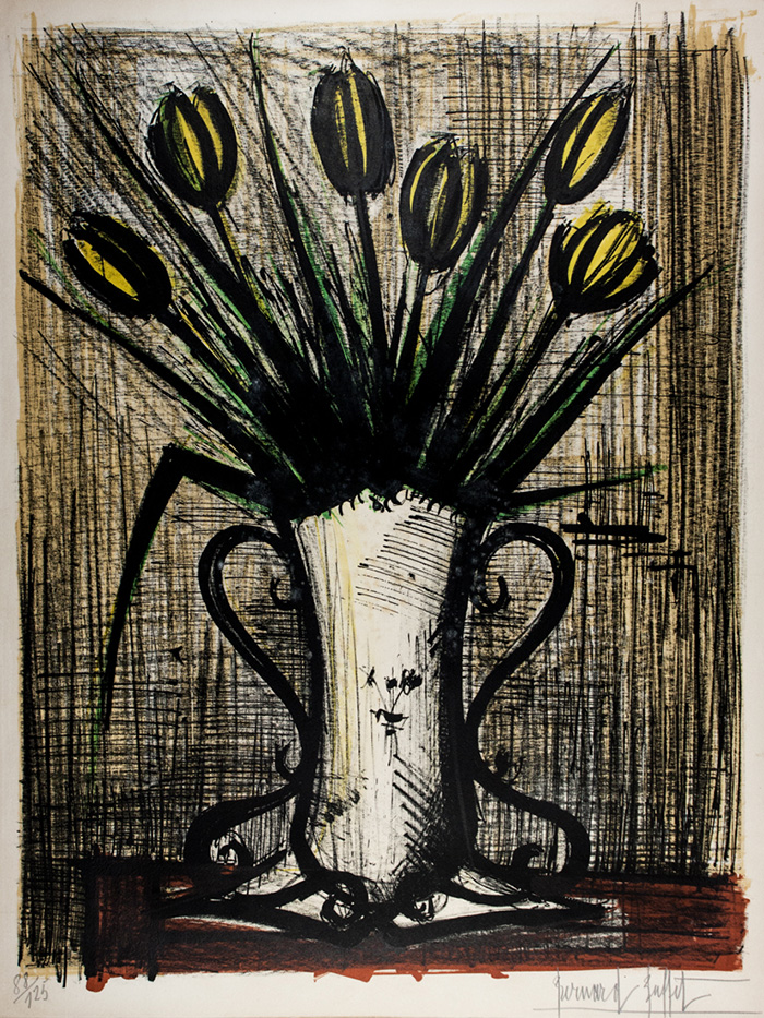 Bernard Buffet, Vase de tulipes.1960Litografia a colori. mm 670x510....