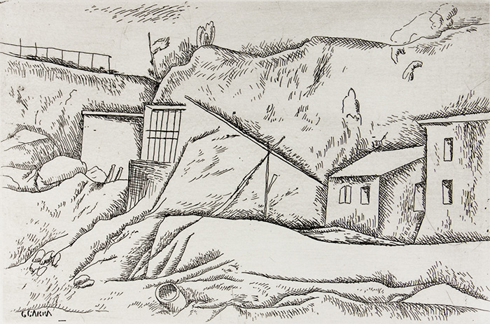Carlo Carrà, La casa del pescatore.1924Acquaforte su rame. mm 148x220....