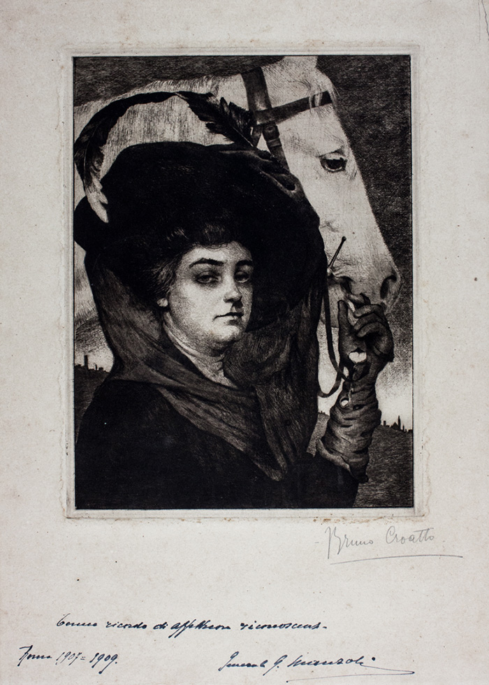 Bruno Croatto, Ritratto di amazzone.ante 1909.Acquaforte. mm 235x180....