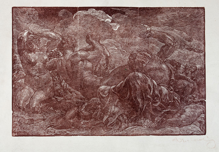 Adolfo De Carolis, Il risveglio.1913 ca.Xilografia in inchiostro...