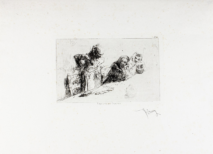 Mariano Fortuny y Marsal, Tireuse de cartes. Acquaforte. mm 110x170....