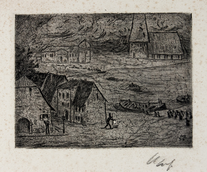 Acquaforte. mm 138x180. Foglio: mm 210x265. Rathenau 3 II. Siglata e datata nella lastra in basso a destra. Firmata sotto a matita. Rara prova firmata non appartenente alla tiratura successiva e non firmata apparsa in "Zeitschrift für Bildende Kunst" nel 1906.
