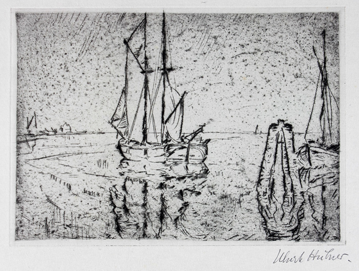 Ulrich Hübner, Brigg.1922Acquaforte. mm 95x140. Foglio: mm 410x340....