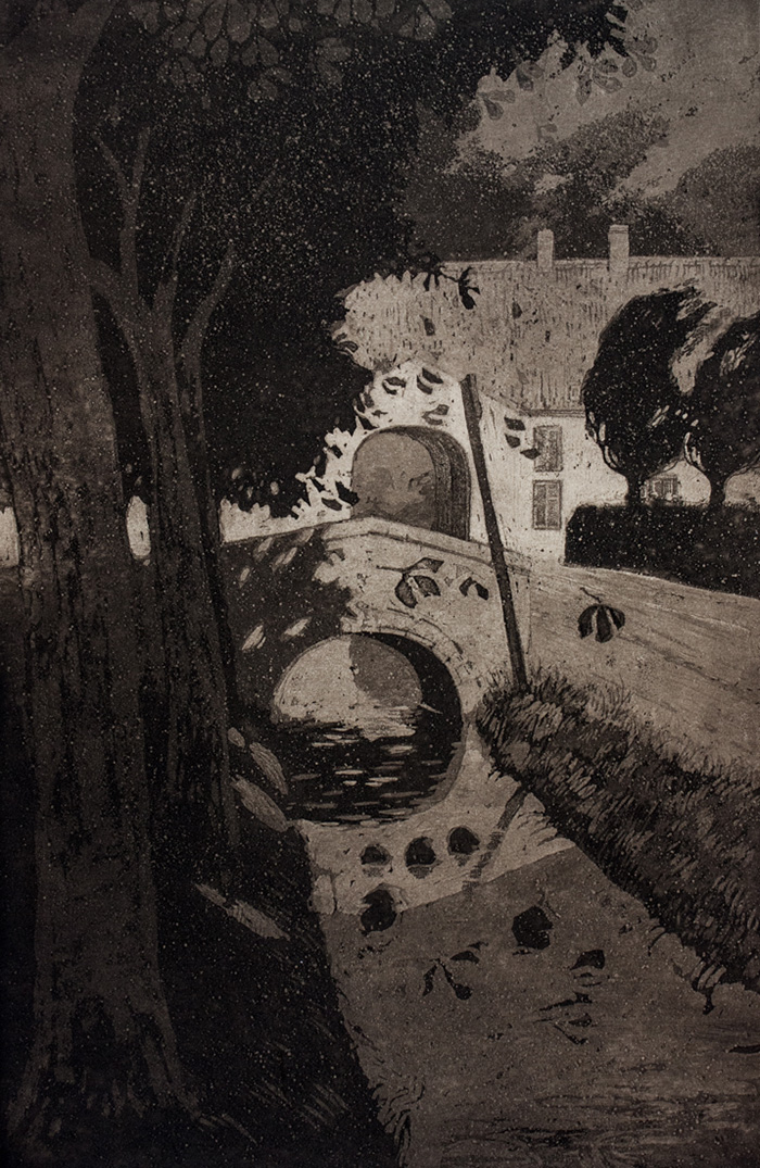 1) Gondole veneziane. 1901. Acquatinta. mm 260x185. Foglio: 355x275. Firmata e datata a matita in basso ai lati. 2) Veduta di paese con ponte. Acquatinta. mm 295x190. Foglio: mm 320x210. 3) Marina. Litografia a colori. mm 170x235. Foglio: mm 180x250. Siglata in basso a sinistra. (3)